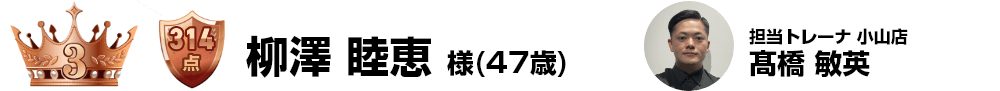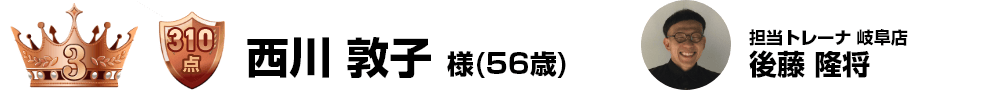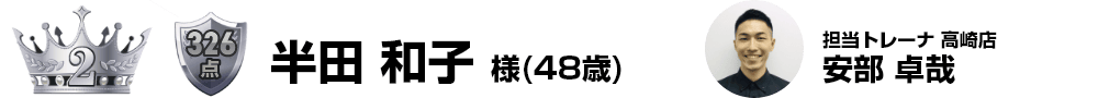 減量幅-28kg-20%というまさにチェンジ部門にふさわしい驚異的な変化を体現されておりました。コメントに記載のあった「今日できるベストを積み重ねる努力を」という常に挑戦し続ける姿勢は年齢を感じさせない素敵な言葉でした。