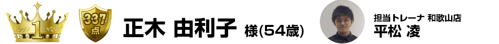 約1年間での減量幅-52kg-44%は1年前と約半分の体重を落としたことになります。担当トレーナーを信じ続けた姿勢と『いくつになっても人生は変えることができる。諦めなければ夢は叶えられる』のコメントからも熱い想いが伝わっておりました。