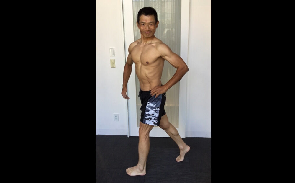 大胸筋の下部とサイドポーズへ移行の際の広背筋と僧帽筋のシルエットが素晴らしかったです。ファイナルの舞台での更に進化されたお身体を楽しみにしております。