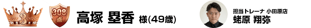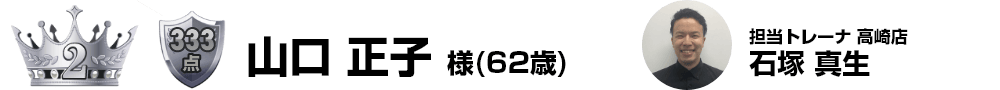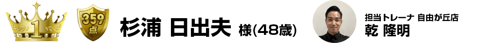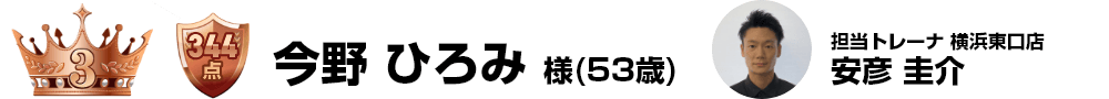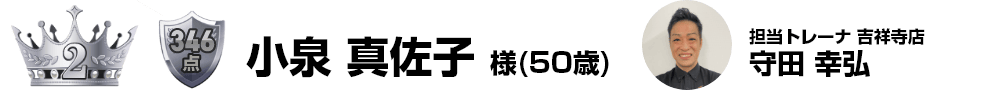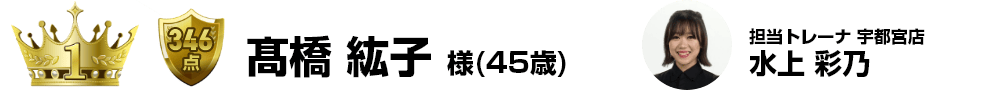 ファイナルで物凄く自信に満ち溢れたスピーチに感銘を受けました。お体の変化も体重-59kg、体脂肪率-41%と素晴らしい結果です。