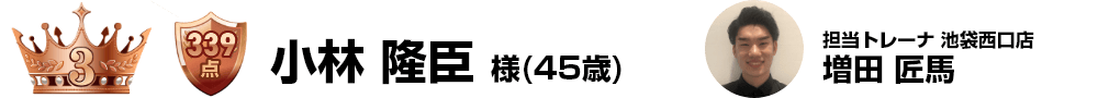 これからも体と心を磨き続け、更にかっこよくなっていく小林様を楽しみにしております。