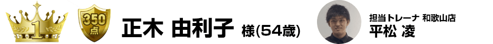 体重-41kg、体脂肪率-42%という劇的な結果と、アフターの素晴らしいお体がお見事でした!スピーチにもありましたように、これからも『青春』を楽しんでいただき、正木様のお力で周りの方に勇気と希望を与えていただけると嬉しいです。