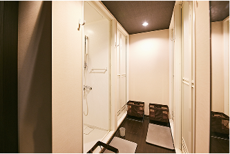 店内は白と黒を基調としたスタイリッシュな雰囲気。ロッカースペースやシャワールームも完備されており、ナチュラルミネラルウオーターやシャンプーやリンス、ボディソープ、メイク落としなどの各種アメニティも充実しています。店内の掃除も徹底されており、清潔な印象を受けました。