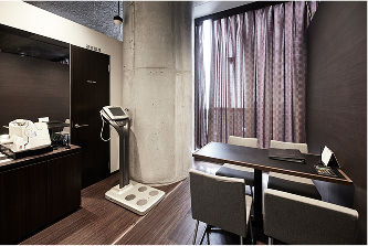 カウンセリングルームには高性能な体組成計や血圧計が完備。トレーニングルームは完全個室で、トレーナーとマンツーマンでトレーニングに集中できる環境が整っています。
