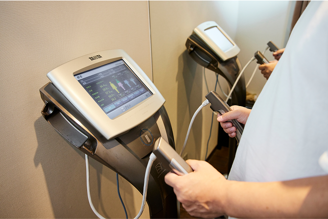 カウンセリングシートとヒアリング内容を確認した後は、非常に高性能な体組成計を使用して今のカラダのデータを測定します。