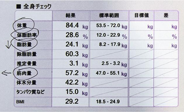 体組成計で測定した後は、トレーナーさんが測定結果をもとに私のカラダの状態を説明してくれました。