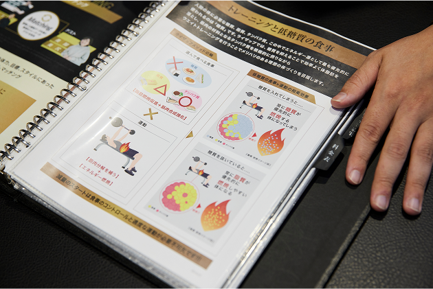 体組成計での測定結果やRIZAPが培ってきた実績やメソッドをもとに、どのくらい痩せることができるのかを示したシミュレーションを見せてもらいました。