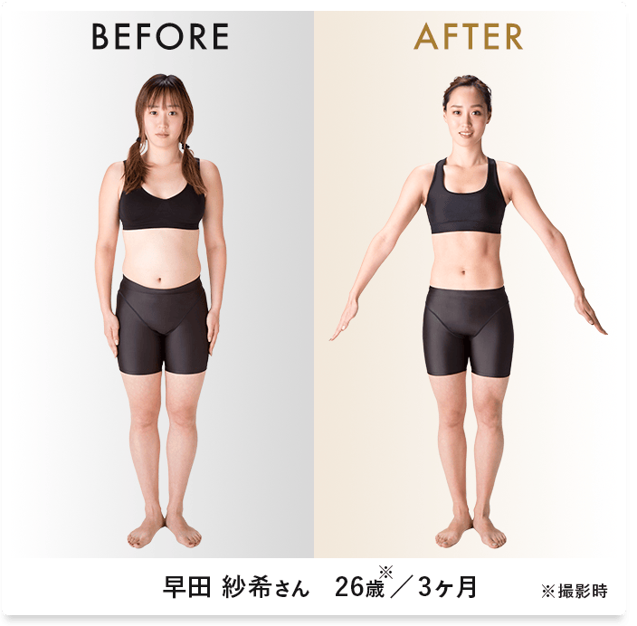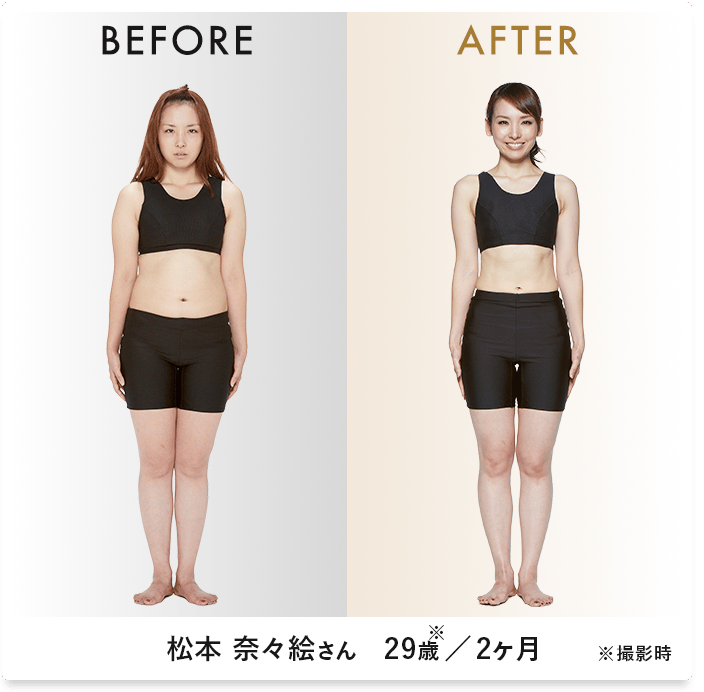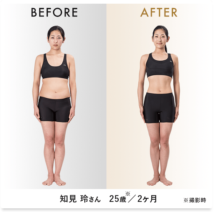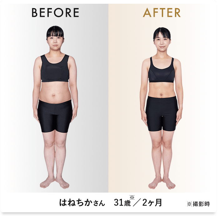 ※体験者(はねちかさん)の体脂肪数値・ウエスト数値はRIZAPの統計データを上回ったものであり、誰もがこの結果を得られるものではありません。※体験者(はねちかさん)の年齢はウエスト数値のエビデンス統計の範囲外です。※結果には個人差があり効果を保証するものではありません。※プログラム実施期間は2ヶ月間になります。※RIZAPの臨床試験結果はこちら