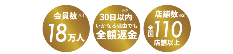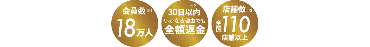 ※1 2022年8月末時点の累計会員数 ※2 入会時に契約したコースの初回のご利用日から30日間。ただし、RIZAPにて販売する物品は対象外となります。返金の手続きは来店の上書面で行うものとし、電話、メールなどの手段による手続きには応じかねます。30日間全額返金保証を利用すると再入会できません。※3 2024年7月31日時点