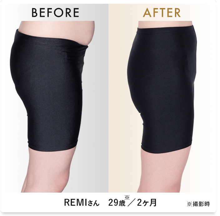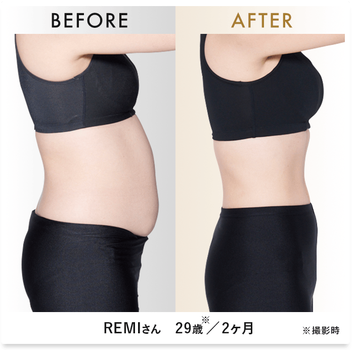 ※体験者(REMIさん)の年齢はウエスト数値のエビデンス統計の範囲外です。※結果には個人差があり効果を保証するものではありません。※プログラム実施期間は2ヶ月間になります。※RIZAPの臨床試験結果はこちら