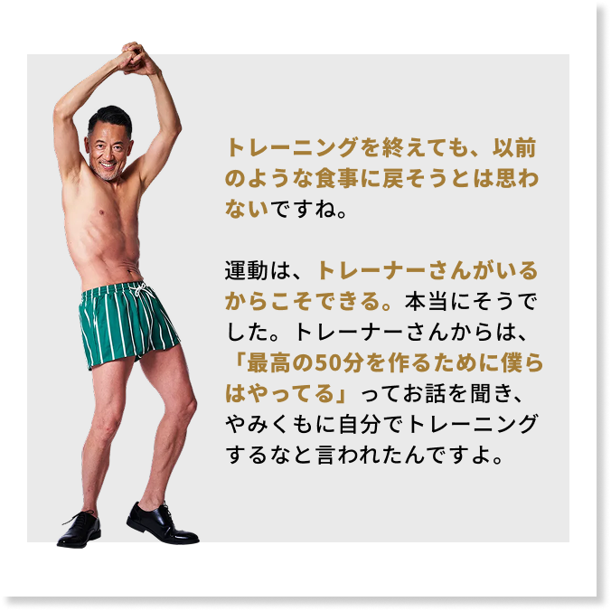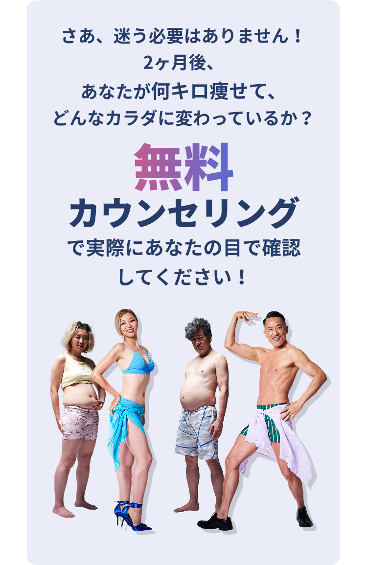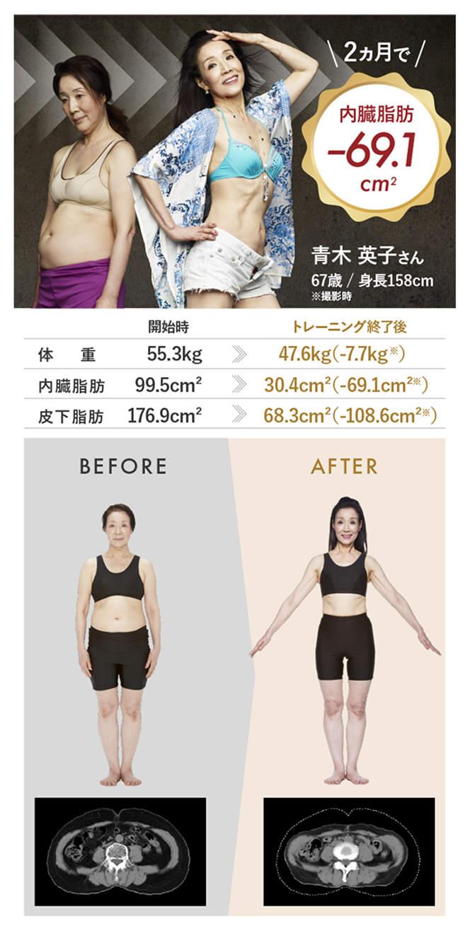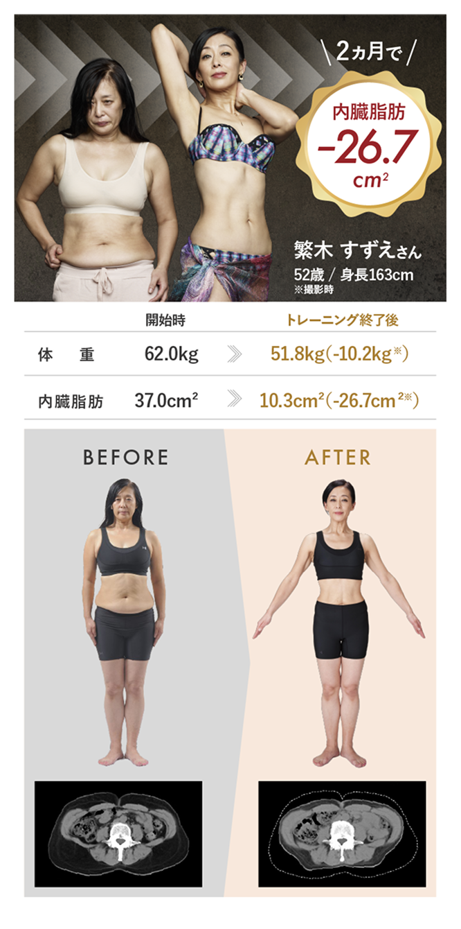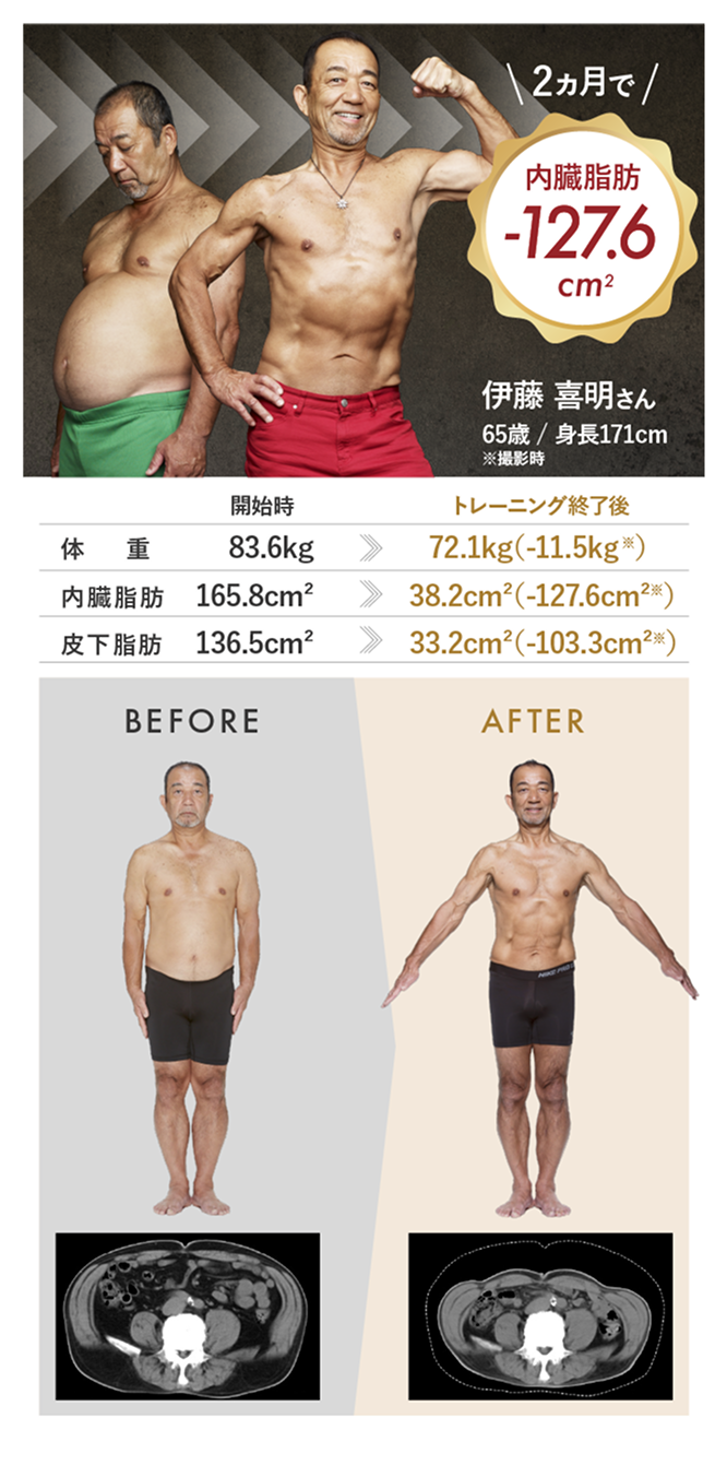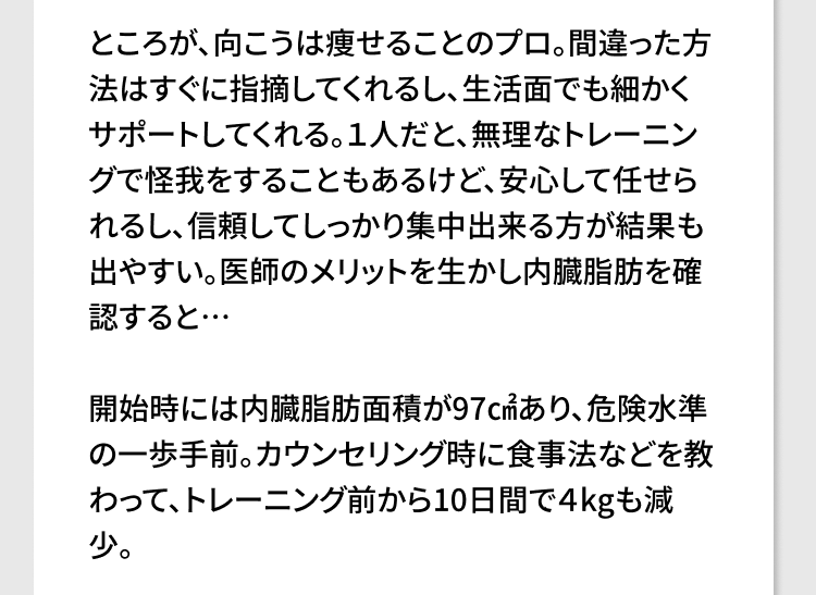 ※体験者(ジャン・裕一さん)の体脂肪数値・ウエスト数値はRIZAPの統計データを上回ったものであり、誰もがこの結果を得られるものではありません。※結果には個人差があり効果を保証するものではありません。※プログラム実施期間は2ヶ月間になります。RIZAPの臨床試験結果はこちら