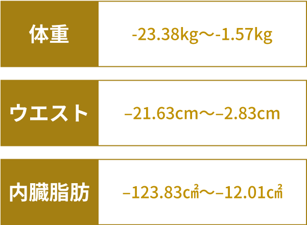 ※体験者(REMIさん)の年齢はウエスト数値のエビデンス統計の範囲外です。※結果には個人差があり効果を保証するものではありません。※プログラム実施期間は2ヶ月間になります。 RIZAPの臨床試験結果はこちら