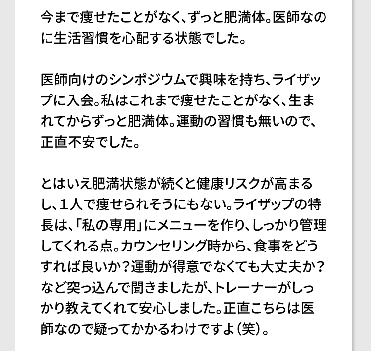 ※依頼したアンケートの回答結果。RIZAPを体験した医師個人の感想です。