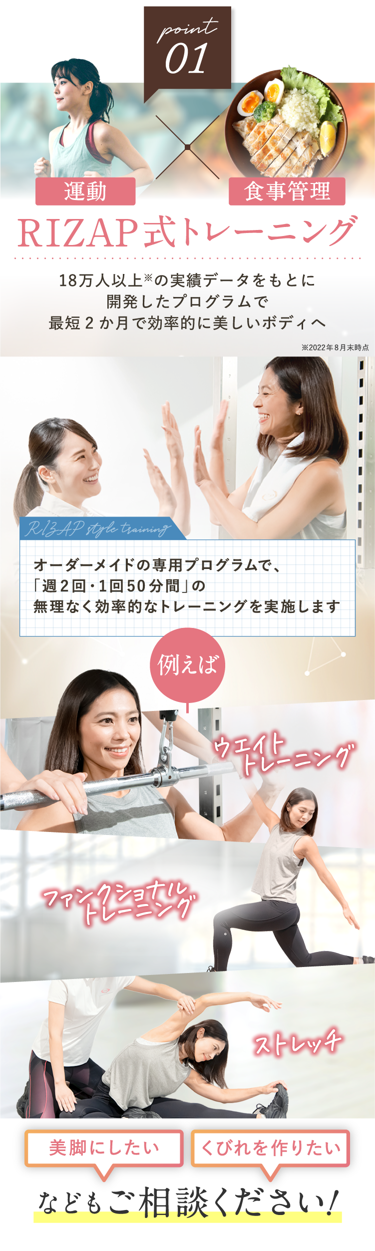 ※知見さん、繫木さんの体重については、RIZAP体験者N=79を、ウエスト周囲ついてはRIZAP体験者N=53(母集団:N=79)を、それぞれ統計処理した結果、確率的に可能な数値(95%信頼区間)は2ヶ月で体重:-0.5~-17.7kg、ウエスト周囲-3.4~-22.4㎝、この範囲に至らない者の割合は、体重:3.80%、ウエスト周囲:5.66%であり(実績値、2018年12月 日本臨床試験協会調べ)、知見玲さんの2ヶ月後の減少数値は、いずれも確率的に可能な範囲です。