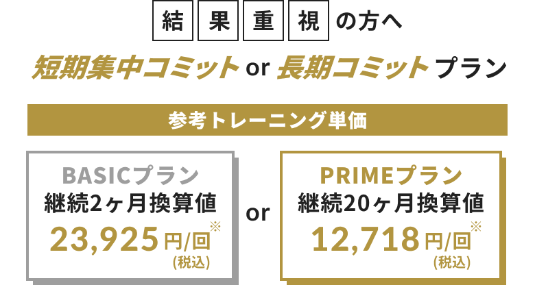 長期的にあなたをサポートすることで、成果と着実な習慣づくり、いずれも徹底的に叶えたい方におすすめです。実際に多くのお客様がPRIMEプランを選び、20ヶ月以上通い続け、確かな結果を感じています。